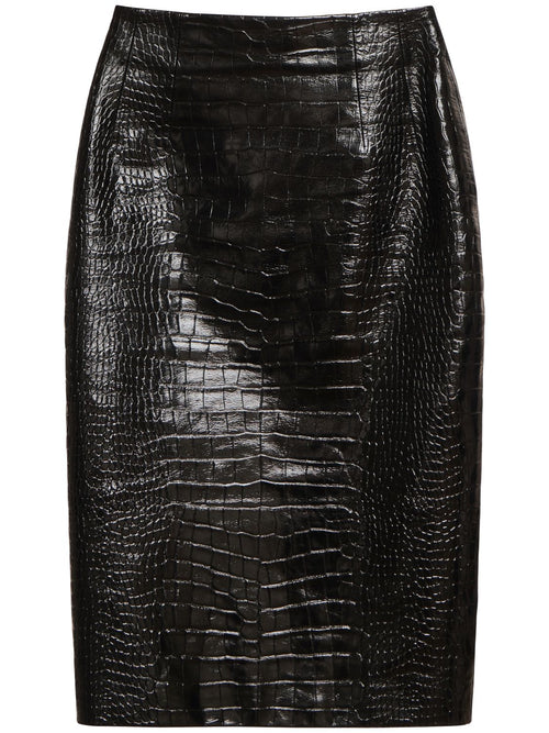 Versace Crocodile embossed leather midi skirt