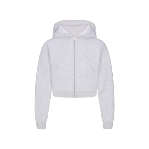COTTON FLEECE SHRUNKEN ZIP UP HOODIE | LIGHT HEATHER GREY -