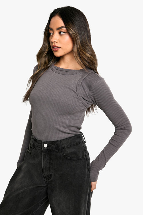 Basic Animal Print Cotton Long Sleeve Asymmetric Top