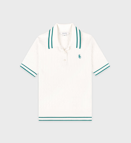 Serif Logo Silk Pique Cropped Polo - Alpine/White/Navy -