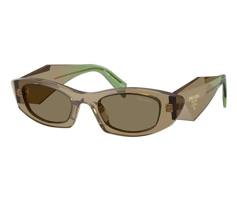 Complete your look with these PRADA sunglasses, model B16S 29E/90F. Designed in an elegant cat eye shape, the brown acetate frame offers a warm and timeless appeal. The light brown solid lenses provide comfortable vision along with essential UV protection, making them ideal for everyday outdoor wear. Crafted from premium acetate, the frame is lightweight, durable, and comfortable for long hours of use. With a classic style and refined silhouette, these sunglasses pair effortlessly with both casual and sophisticated outfits. Perfect for those who value understated luxury, this Prada design reflects fine craftsmanship, elegance, and everyday versatility.