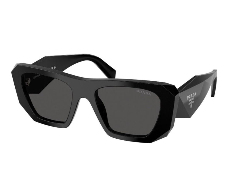 The Prada B18S 16K/08Z sunglasses feature a sleek and timeless design that reflects classic sophistication. Crafted from high-quality acetate, the black rectangular frame offers durability along with a comfortable, lightweight fit. The solid dark grey lenses provide essential UV protection, helping to shield your eyes from harmful sunlight while maintaining clear and comfortable vision. With their clean lines and versatile style, these sunglasses are ideal for daily wear as well as formal occasions. A refined accessory from Prada, they add a confident and polished finish to any outfit.