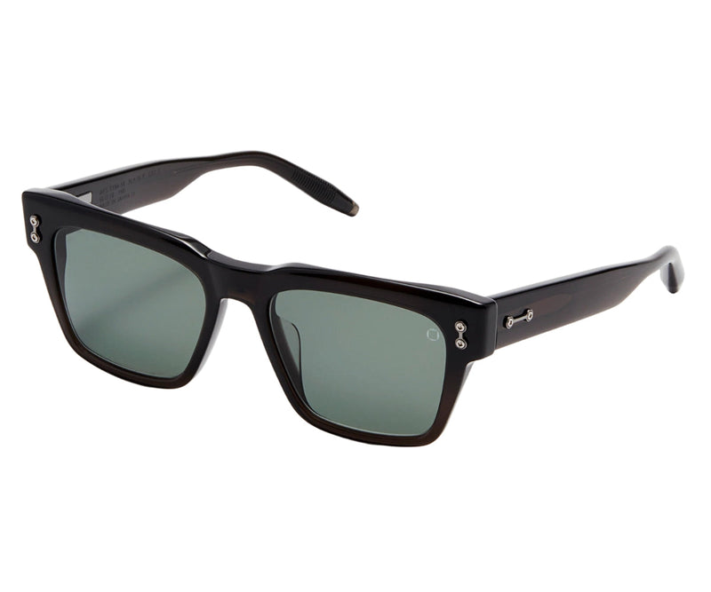 Akoni’s Columba builds upon a timeless, West-Coast spirit, effortlessly evoking So- Cal’s legendary easy-going, sun, surf and convertible vibe. But it wasn’t enough to be in- spired by the moodboards filled with timeless images of the long list of actors, athletes and artists who are very much associated with this popular silhouette—Akoni was determined to truly update this classic frame, opting for a new modern-luxury spin that allows for bolder, more substantial lines and amplified silhouette that feel very much of today, while always holding tight to an enduring legacy. As always, Ako- ni’s engineering genius is evident in the many small details that impress on close inspection, including custom rivets, branded titanium tem- ple tips and the brand’s impressive hinge plate and threaded screw system, designed to best guarantee longtime enjoyment. The frames’ three tones of crystal acetate, each paired with a complementary gold highlights, rely on the luminous beauty of Akoni’s famed sleek and smooth premium Japanese acetate to give a quiet finishing touch of luxury.