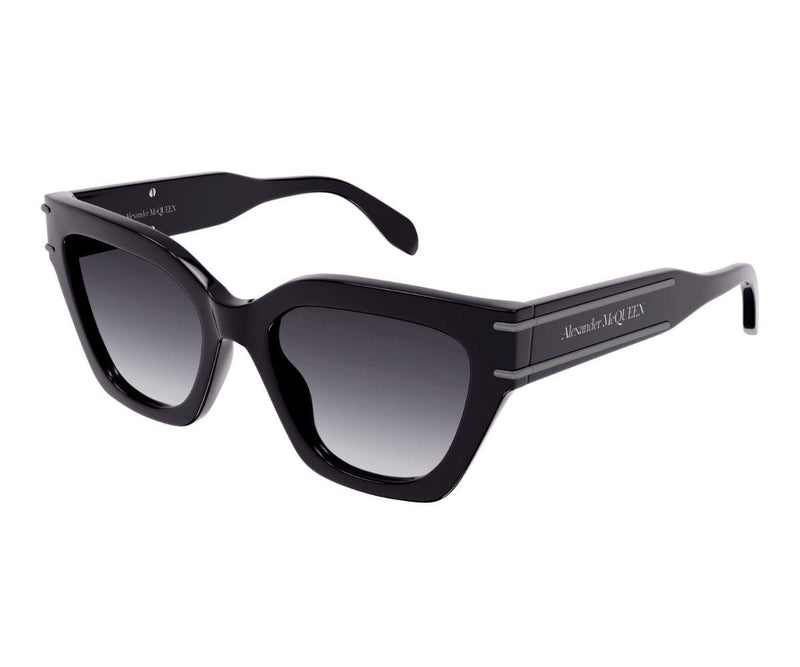 Selvedge Lines family, highly recognizable and distinctive, is inspired by jeans' "cimosa" also called selvedge, that has given rise to Signature accessories line launched by McQueen in FW21. Feminine geometrical cat eye shape in full acetate with metal lines detal that runs from the corner angle to the temple. The Alexander McQueen logo is lasered on the temples and framed between the metal lines. The color palette includes: shiny classic colors paired with tone on tone gradient lenses and a colored one and also a poppy pink sku. The metal lines on the temples are colored in contrast with the acetate construction.