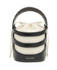 Elevate your style with this Alexander McQueen black and ivory white calf leather caged design bucket bag. Featuring gold-tone logo lettering, top drawstring fastening, adjustable detachable shoulder strap, two top handles, and a spacious main compartment. Dimensions: DEPTH: 14.0cm, HANDLE: 10.0cm, HEIGHT: 20.0cm, STRAP: 114.0cm, WIDTH: 15.0cm.