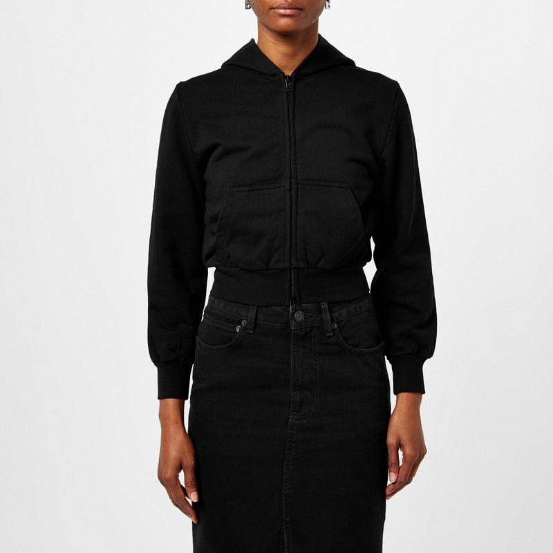 Add a touch of refinement to your off-duty days with the Balenciaga Pre-shrunk Zip Up Hoodie. Made from high-quality cotton, this hoodie offers a luxurious and soft feel against the skin, ensuring optimal comfort. The cropped design adds a modern twist, creating a flattering silhouette that effortlessly complements any outfit. The ribbed cuffs not only provide a snug fit but also add a touch of refinement to the overall design.
