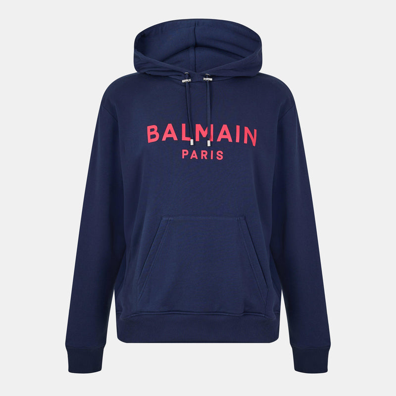 Bold branding meets everyday comfort in Balmain's Logo Hoodie. This men's casual fashion apparel from the designer brand features a relaxed fit with embossed lettering across the chest.