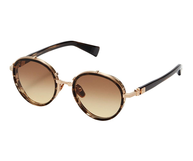Rounded lenses reference ‘80s rock rebel styling—an important influence in almost every collection shown during the Olivier Rousteing era. Patterns expertly etched into Japanese titanium half-rims echo the striking rhythms of classic Haussmannien exteriors—the type of distinctively Parisian architectural flair that has been channeled into Balmain offerings for over 75 years. An array of striking color combinations reflects iconic Balmain tones: the always present black-and-gold pairing, the fresh blue-and-silver mix of the house’s signature marinière offerings and a rich bronze and dark brown faux-tortoise that channels looks that Rousteing recently sent down fashion-week runways.
