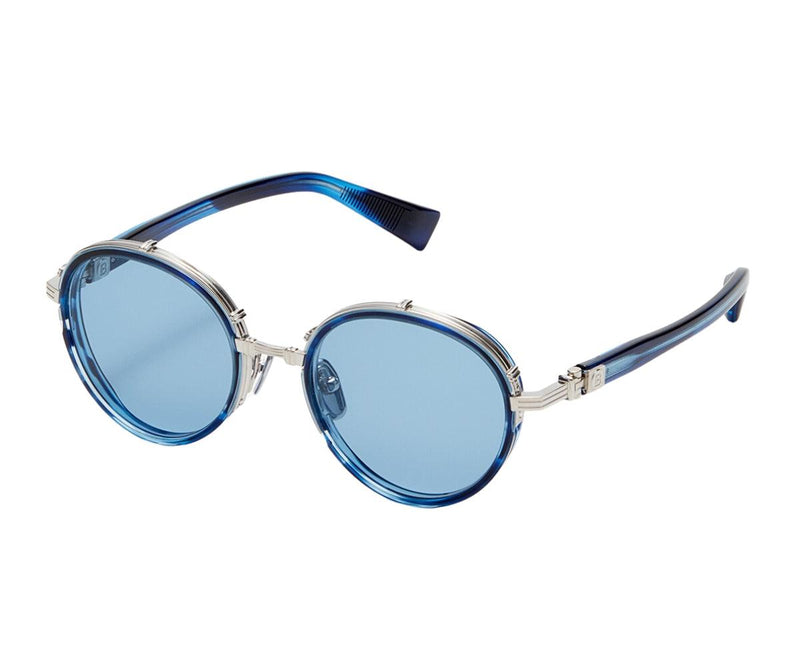 Rounded lenses reference ‘80s rock rebel styling—an important influence in almost every collection shown during the Olivier Rousteing era. Patterns expertly etched into Japanese titanium half-rims echo the striking rhythms of classic Haussmannien exteriors—the type of distinctively Parisian architectural flair that has been channeled into Balmain offerings for over 75 years. An array of striking color combinations reflects iconic Balmain tones: the always present black-and-gold pairing, the fresh blue-and-silver mix of the house’s signature marinière offerings and a rich bronze and dark brown faux-tortoise that channels looks that Rousteing recently sent down fashion-week runways.