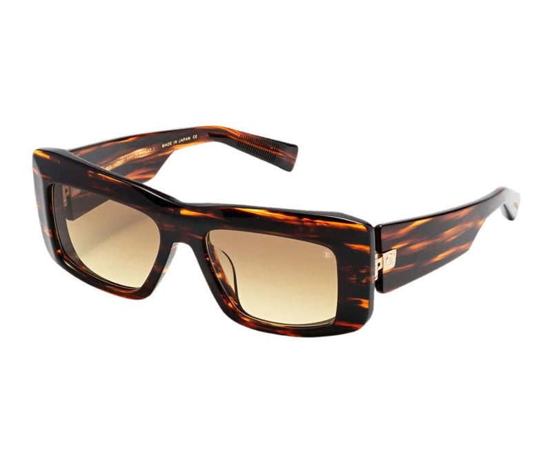 The substantial, oversized acetate frames make clear Rousteing’s mastery in creating eye-catching, bold sculptural silhouettes. Akoni skilled artisans created the slightly curving wrap-around front based on Rousteing’s sketches, perfecting his request for a uniquely seductive play on surfaces. Joined by the iconic Balmain floating five-barrel titanium hinges to the equally striking temples, it’s easy to see why Rousteing decided that the perfect name for this new tempting frame was ENVIE, the French word for lust, longing and desire. For, as Rousteing notes: “Elegance, done in an unexpected manner, can be very edgy.”