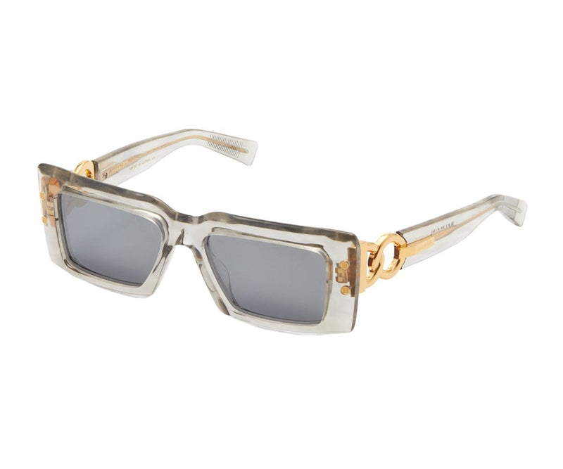 The dazzling architectural and design styles seem to be inescapable in Paris, where the famous boulevards and impressive avenues, help to create the city’s legendary beauty. For his new Imperial frame, Rousteing riffs on Paris’ distinctive elegance, opting for bold sculptured geometrical fronts that echo the awe-inspiring perspectives of the French capital. Familiar golden symbols of the house are also referenced, as the iconic Balmain linked chain, often spotted on the house runways, and originally inspired by the traditional motifs of French silk scarves.
