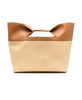 Introducing the Alexander McQueen Beige Bow Straw-Woven Tote Bag, a stunning addition to our collection of handbags. This two-tone design features a combination of beige and brown, crafted with straw and calf leather. The flat top handles provide comfortable carrying, while the removable pouch adds convenience. With a spacious main compartment, this bag is perfect for all your essentials. Outer fabric details include 100% straw and 100% calf leather.
