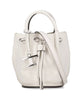 Elevate your style with this beige Tod's leather bucket bag for women. Featuring two handles, an adjustable and removable shoulder strap, drawstring fastening, front tone-on-tone imprinted logo, and front metal monogram.