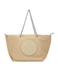 Elevate your style with this chic Tory Burch tote bag. Crafted from technical fabric with bio-based trim, this bag features a lined interior, woven chain and leatherette handles, and multiple pockets for your essentials. With a top zipper closure and a hidden button pocket on the front, this bag is both stylish and practical. Dimensions: H 29cm, W 32cm, D 16cm.