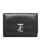 Elevate your style with the Jimmy Choo Black Avenue Clutch Bag. This black clutch features a foldover top with magnetic fastening, detachable chain-link shoulder strap, internal slip pocket, and logo plaque. Perfect for the modern woman on the go.