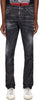 Slim-fit stretch denim jeans. Fading, whiskering, creasing, and distressing throughout.