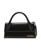 Elevate your style with this Jacquemus black handbag featuring a foldover top with magnetic fastening. Designed with a single rolled top handle and an adjustable detachable shoulder strap, it includes an internal slip pocket for your essentials. Dimensions: DEPTH 7.0 cm, HEIGHT 11.0 cm, WIDTH 22.0 cm, HANDLE 7.0 cm.