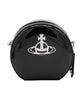 Elevate your style with this black leather crossbody bag from Vivienne Westwood. Featuring a frontal silver-tone logo, zip fastening, round shape, and adjustable strap.
