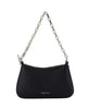 Elevate your style with this Alexander McQueen shoulder bag crafted from textured lambskin. This versatile bag features an adjustable shoulder chain, two compartments, two zipped pockets, and a top magnetic clasp closure. Made of grained lamb leather with cotton lining. Available in BLACK and BLACK/SILVER.