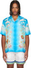 Blue Kawaii Motif Short Sleeve Silk Twill Shirt