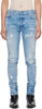 tretch denim jeans. Fading, hand-distressing, whiskering, and hand-applied paint splatter throughout.