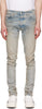 Skinny-fit stretch denim jeans. Fading, whiskering, smudging, and distressing throughout.