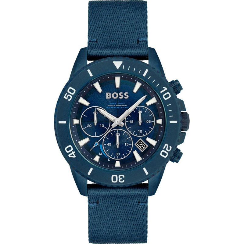 The Admiral Ocean from BOSS features thoughtful design and precision. The 46 mm case sits prominently on a strap while solar power technology drives the watch's functionality for reliable performance.