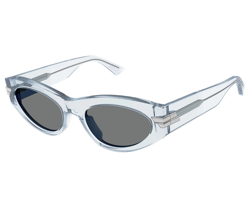 The BOTTEGA VENETA 1189S 003 sunglasses blend classic charm with a fresh, modern aesthetic. The frame, crafted from high-quality acetate, features a captivating shiny transparent light blue finish that exudes elegance and individuality. Paired with solid grey lenses, these sunglasses offer essential UV protection, ensuring comfort and eye safety in sunny environments. The timeless silhouette complements a variety of face shapes, making them a versatile choice for both casual and formal occasions. BOTTEGA VENETA's dedication to superior craftsmanship and innovative design is evident in every detail, delivering a luxurious accessory that seamlessly merges style and functionality. Perfect for those who seek eyewear that stands out with subtle sophistication.