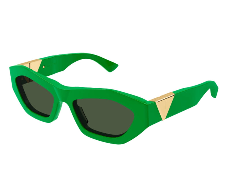 The BOTTEGA VENETA 1221S 003 sunglasses bring a bold, fashion-forward edge to contemporary eyewear. Featuring an irregular shape and crafted from striking green acetate, this model stands out with its unique design and sculptural silhouette. The solid grey lenses offer essential UV protection, making them as functional as they are stylish. Designed for trendsetters, these sunglasses blend artistic flair with high-end craftsmanship, reflecting BOTTEGA VENETA’s signature minimalist luxury. Lightweight yet sturdy, they ensure all-day comfort while adding a statement finish to any look. Perfect for those who embrace individuality and modern elegance, this pair is a standout accessory for making a lasting impression.