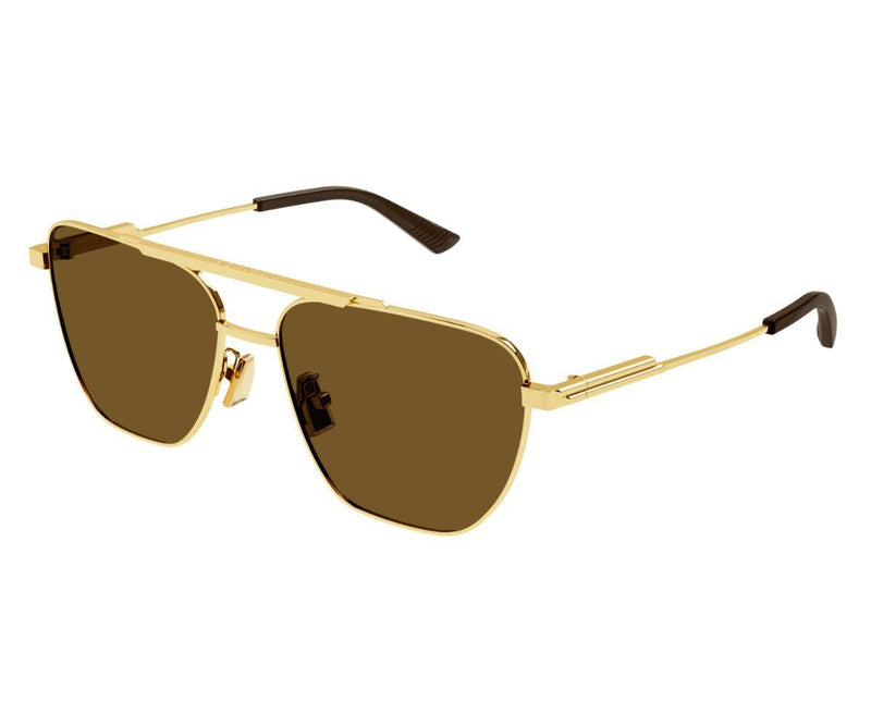 Full metal masculine and contemporary double bridge shape. Super light full metal temples enriched by the iconic double ribbon. Bottega Veneta logo on the bridge. Acetate endtip to increase comfort.