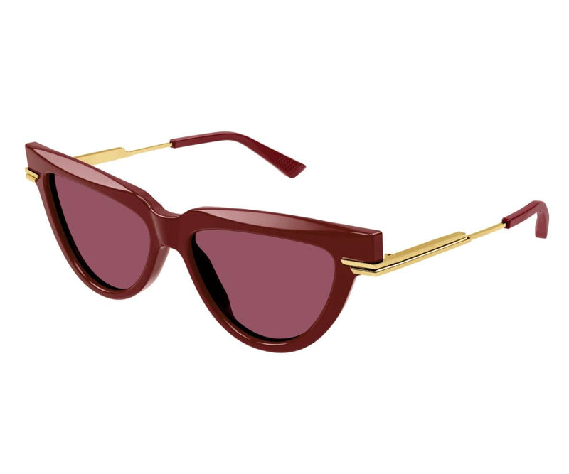Combi feminine cat-eye style characterized by acetate sharp and bold front. Super light full metal temples enriched by the iconic double ribbon. Bottega Veneta logo on the temple. Acetate endtip to increase comfort.