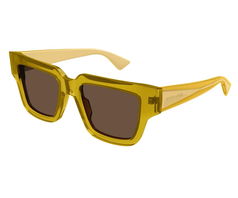 Full acetate feminine rectangular oversize style. Temple made by casting resin, with iconic triangular metal wirecore featuring lettering logo visible through the transparent resin.