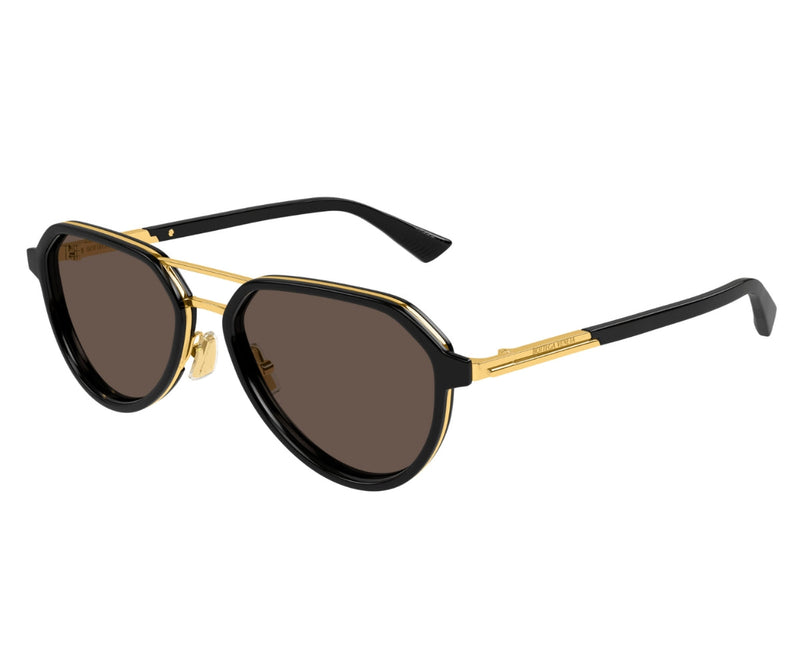 The BOTTEGA VENETA 1373S 001 sunglasses combine classic design with modern luxury. Featuring a bold Black & Gold frame in a timeless navigator shape, these sunglasses exude sophistication and style. The solid brown lenses offer essential UV protection, making them perfect for everyday wear while shielding your eyes from harmful rays. Crafted from a high-quality combination of materials, the frame ensures durability and comfort. Ideal for those who appreciate refined details and Italian craftsmanship, the 1373S 001 delivers a sleek, confident look suitable for any occasion. Whether dressing up or going casual, these BOTTEGA VENETA sunglasses are a standout accessory with lasting appeal.