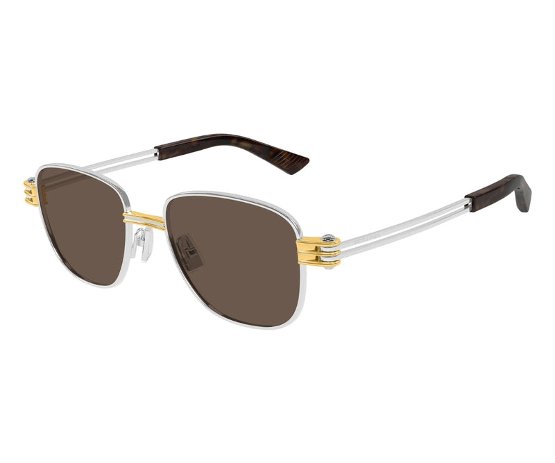 Bottega Veneta 1380S 001 sunglasses combine sophistication and modern luxury with their sleek silver and gold metal frame. The classic rectangle shape offers a timeless appeal, while the solid brown lenses provide UV protection and a refined aesthetic. Designed with precision, the dual-tone metal construction adds a touch of elegance, making these sunglasses a perfect statement piece. The lightweight frame ensures all-day comfort, while the subtle branding and intricate details showcase Bottega Veneta’s signature craftsmanship. Ideal for both casual and formal wear, these sunglasses enhance any outfit with their understated yet distinctive style. A perfect blend of innovation and tradition, they are designed for those who appreciate high-end fashion with a contemporary edge.