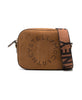 Elevate your style with this Stella McCartney chestnut brown faux suede cross body bag. Featuring a top zip fastening, adjustable logo-jacquard shoulder strap, faux-leather trim, perforated logo detail, and internal slip pocket. Dimensions: 6.0cm D x 16.0cm H x 20.0cm W.