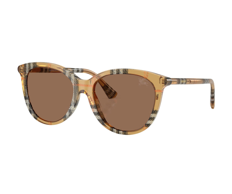 The BURBERRY 4455 4163/73 sunglasses embody classic British charm with a modern twist. Featuring a round silhouette, the frame is crafted from premium acetate in a distinctive light brown check pattern—an iconic nod to Burberry’s heritage. The dark brown solid lenses offer essential UV protection, combining style with function for everyday wear. Lightweight and comfortable, this design blends timeless elegance with a subtle statement, perfect for those who appreciate refined details and standout textures. Whether you're out for a stroll or dressing up for a sunny day, the 4455 model adds a touch of sophistication and effortless style to any outfit, making it a staple in any luxury eyewear collection.