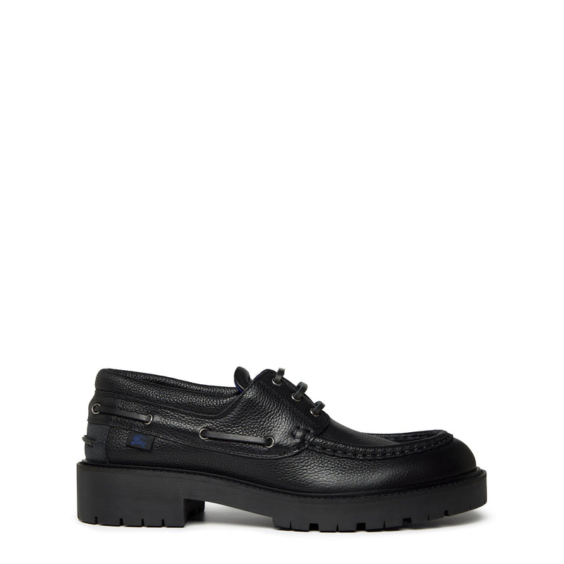 Elevate your footwear collection with Burberry’s Leather Raft Boat Shoes. Effortlessly chic and suave, this classic choice has been constructed with grain leather and a logo motif tab on the side for a subtle nod to luxury. From office wear to fashion-forward outings, choose Burberry.