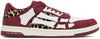 Low-top paneled suede, grained leather, and hair-on leather sneakers in burgundy.