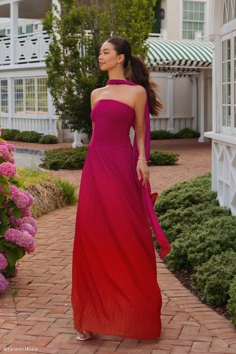 Caira Chiffon Scarf Maxi Dress - Ombre Dark Pink