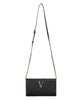Elevate your style with this luxurious Versace crossbody bag crafted from calf leather. This elegant accessory combines functionality with sophistication, making it a perfect addition to any wardrobe. Key attributes: Black | Calf Leather | Magnetic flap closure | Removable leather and chain strap | Gold-tone metal hardware | Two internal compartments | Central zippered pocket | Ten card slots | Dimensions & fit: W 21.5cm x H 12.5cm x D 3cm | Strap length: 124.5cm | Composition & care: 100% Calf Leather | 100% Cotton | Fabric lining