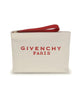 Elevate your style with the Canvas Pochette by Givenchy, a chic clutch designed for the modern woman. Featuring a zip closure, a grosgrain shoulder strap lined with leather, and the iconic GIVENCHY Paris logo on the front, this pochette is both stylish and functional. Made in Italy, it boasts a main compartment and a flat inner pocket for your essentials. Season: AW25. Dimensions: 19x19x5. Composition: 58% Cotton, 38% Linen, 4% Polyurethane.