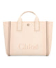 Elevate your style with this Chloé tote bag crafted from canvas with leather details. Featuring two fabric handles, snap closure, an internal pocket, and an adjustable leather shoulder strap. Complete with gold-tone metal hardware and fabric lining. Dimensions: W40 x H29 x D16 cm. Strap length: 100 cm. Made of 91% Cotton, 6% Polyester, 3% Other fibers, 100% Calf.