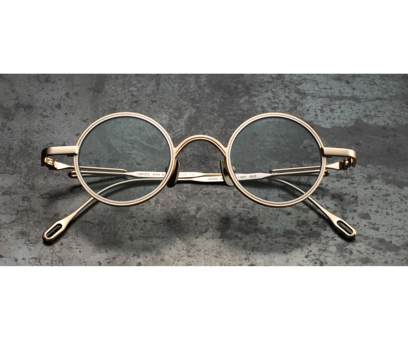 CAPOTE C001 GOLD / GREEN MINT sunglasses bring together timeless elegance and modern exclusivity. Designed with a classic round shape, the refined gold titanium frame offers a lightweight yet durable construction for superior comfort. The solid green mint lenses introduce a fresh and contemporary touch, creating a distinctive visual appeal. Crafted for everyday sophistication, the lenses provide reliable UV protection to help protect your eyes from harmful sun exposure. Perfect for those who appreciate premium materials and unique color combinations, these sunglasses effortlessly complement both casual and refined looks while delivering a confident, fashion-forward statement.