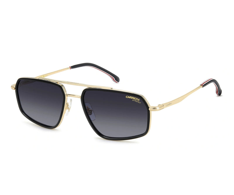 Carrera 338/S RHL/9O is a classic navigator-shaped sunglass that embodies timeless sophistication with a bold edge. The striking combination of gold and black in the metal frame adds a refined yet contemporary appeal, making it a versatile statement piece. Designed for durability and comfort, the lightweight structure ensures a secure and effortless fit for everyday wear. The dark grey gradient lenses provide essential UV protection while offering a smooth transition from darker to lighter tones for enhanced visual clarity. With its structured navigator shape, this frame exudes confidence and elegance, perfect for individuals who appreciate classic eyewear with a modern twist. Carrera’s signature craftsmanship ensures both style and functionality in this must-have accessory.