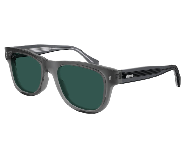 The CARTIER 0277S 005 sunglasses combine timeless sophistication with modern craftsmanship. Featuring a sleek grey acetate frame in a classic rectangular shape, these sunglasses exude understated elegance. The solid green lenses not only enhance the aesthetic but also provide essential UV protection, ensuring style and safety in equal measure. Perfectly suited for both casual and formal occasions, the 0277S 005 sunglasses are a versatile accessory that complements any wardrobe. Crafted with Cartier’s renowned attention to detail and commitment to luxury, this pair delivers exceptional comfort and durability. Whether you're stepping out in the city or enjoying sunny escapes, these sunglasses are a sophisticated statement piece for those who value refined style.