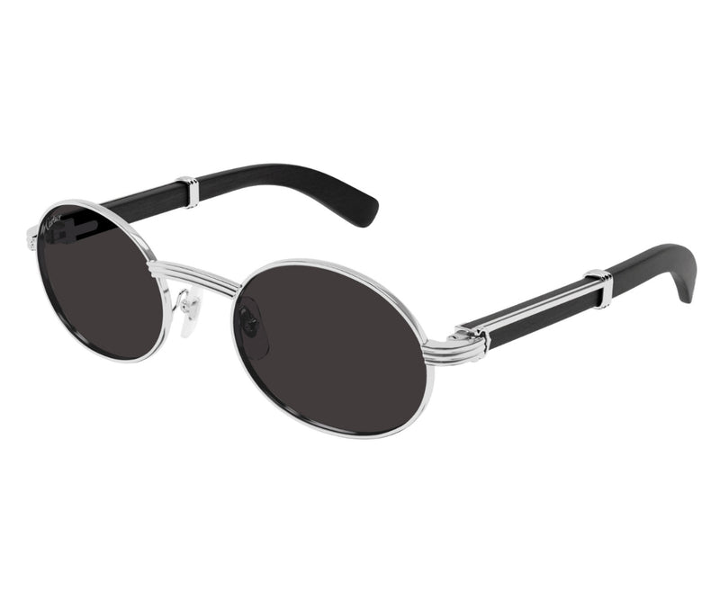 Discover unmatched elegance with the CARTIER 0464S 012 sunglasses. Designed in a refined oval shape, these sunglasses feature a striking silver metal frame paired with luxurious wood detailing for a truly exclusive look. The solid grey lenses offer reliable UV protection while complementing the sophisticated tone of the frame. Expertly crafted from premium metal and wood, the design reflects Cartier’s signature blend of timeless style and exceptional craftsmanship. Lightweight yet durable, these sunglasses provide all-day comfort with a touch of distinction. Ideal for those who value understated luxury, the 0464S 012 is a perfect choice for elevating both casual and formal ensembles.