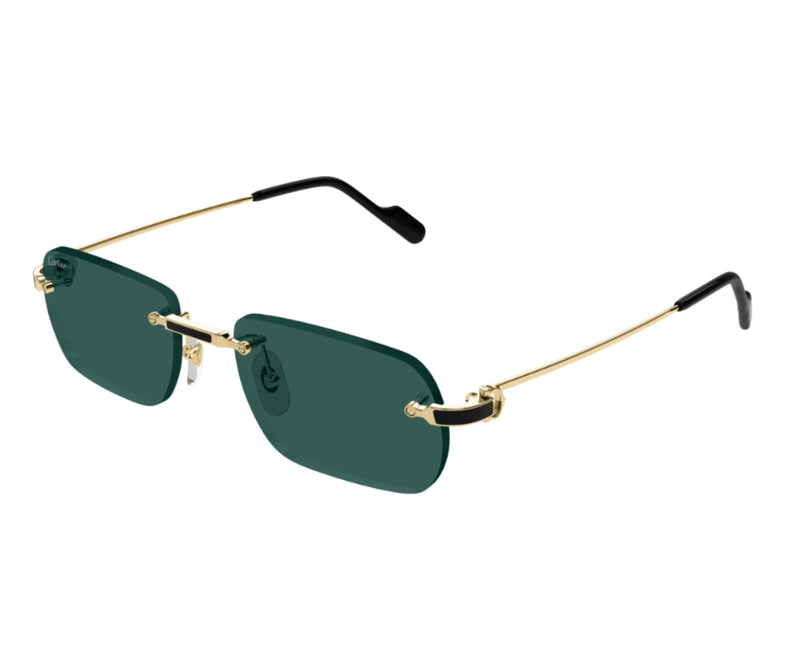 Refined lacquered details enrich the front and the hinge to further enhance the iconic Godron and C de Cartier signature. Modern and easy-to-wear soft rectangular shape in rimless construction combined with elegant and sophisticated light temples. Prèmiere de Cartier dedicated Zeiss colourful lenses with light gold flash effect and red anti-reflective coating ton sur ton with the enamel details. Precious finish in gold or platinum, Cartier logo plaque on the acetate temple tips and Double C Décor on the nose pads.