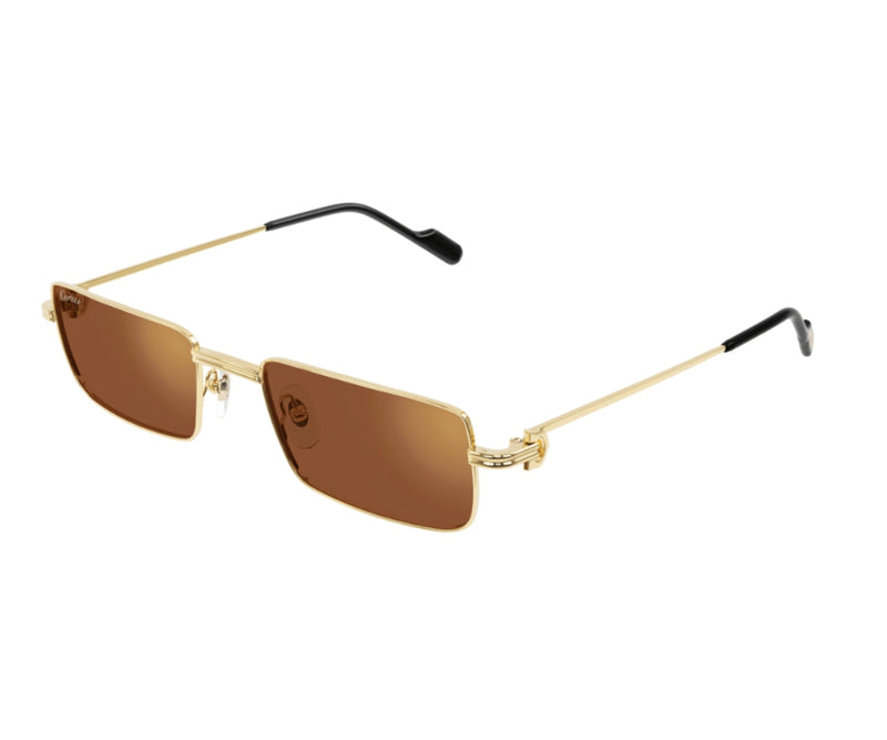 The Cartier 0501S 006 sunglasses exude luxury and sophistication with their striking gold metal frame and bold rectangular shape. Designed for the fashion-forward, these exclusive sunglasses feature solid red lenses that provide essential UV protection, offering both style and functionality. The lightweight metal frame ensures durability and comfort, making them perfect for all-day wear. The bold color contrast and elegant design make these sunglasses a standout accessory, ideal for those who appreciate refined craftsmanship and unique style. With the 0501S 006, Cartier delivers eyewear that combines timeless luxury with contemporary flair.