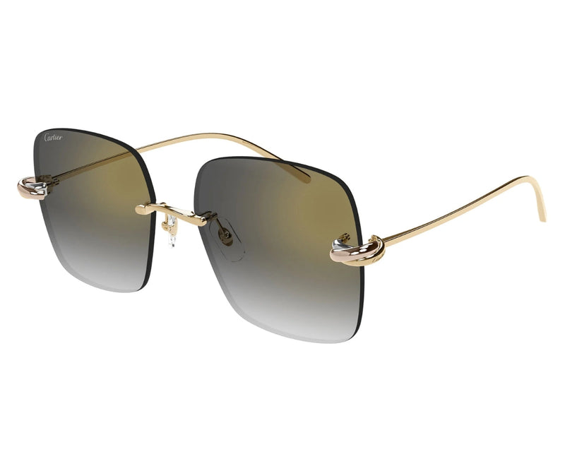 The Cartier 0508S 001 sunglasses are a perfect fusion of luxury and bold design. Featuring a distinctive rectangle shape, the gold metal frame adds a touch of opulence and sophistication. The grey gradient lenses not only provide UV protection but also create a stylish gradient effect, offering a modern and refined look. Crafted with Cartier's signature attention to detail, these exclusive sunglasses are ideal for those who appreciate high-end fashion with a contemporary edge. Lightweight and durable, they are perfect for elevating any outfit, making the 0508S 001 a must-have accessory for the discerning fashion enthusiast.