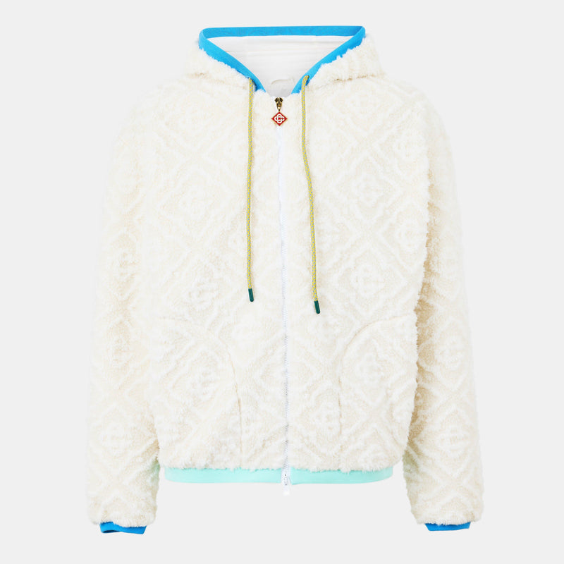Update casual wear with Casablanca's Casa Monogram Zip Hoodie. This designer piece features monogram detailing and a comfortable zipper-front design for an easy everyday fashion style. Great as a sweatshirt or light jacket.